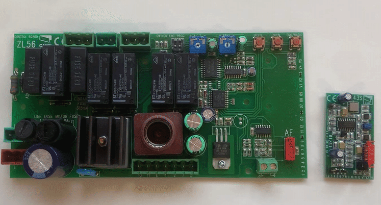- La carte radio ( AF43S ou AF868 ) permet de décoder le signal de vos télécommandes. Vous devez installer votre carte radio sur la nouvelle carte, prise de couleur ROUGE marquée AF ( montage et démontage hors tension ).
