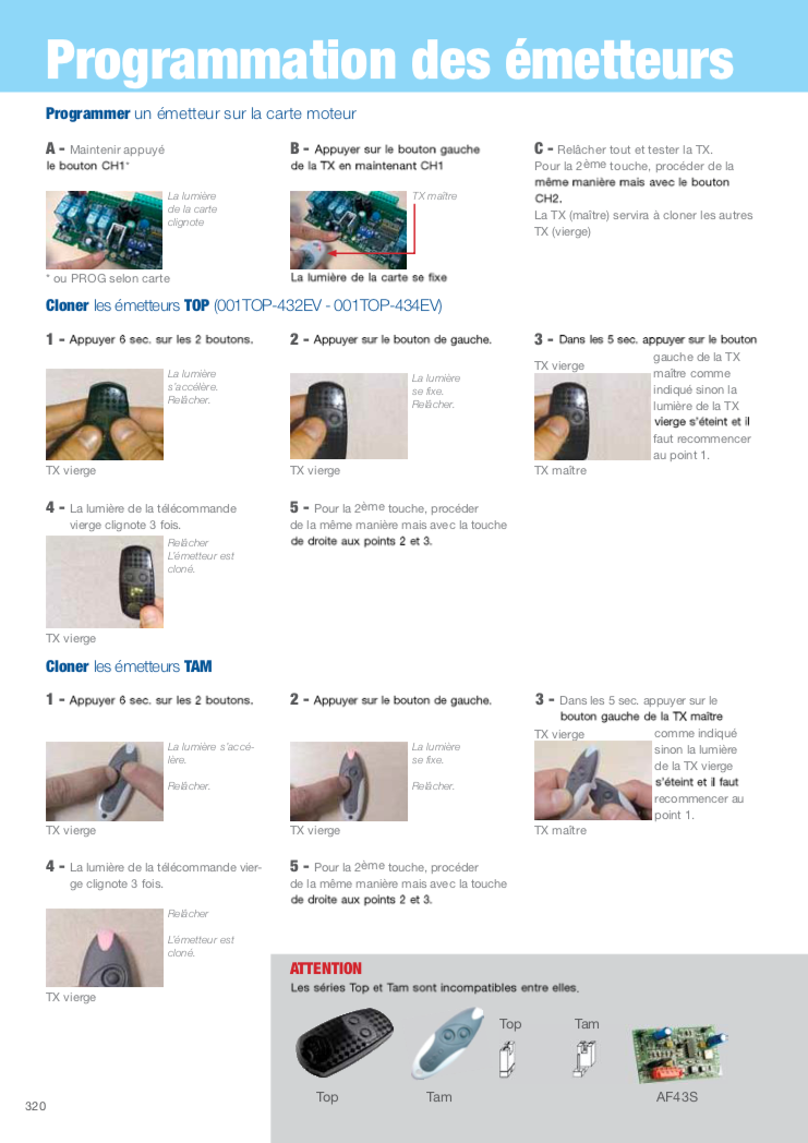 - Carte avec afficheur : Menu U1 ( insertion nouvel utilisateur ) + bouton de la télécommande à programmer. CF Notice.